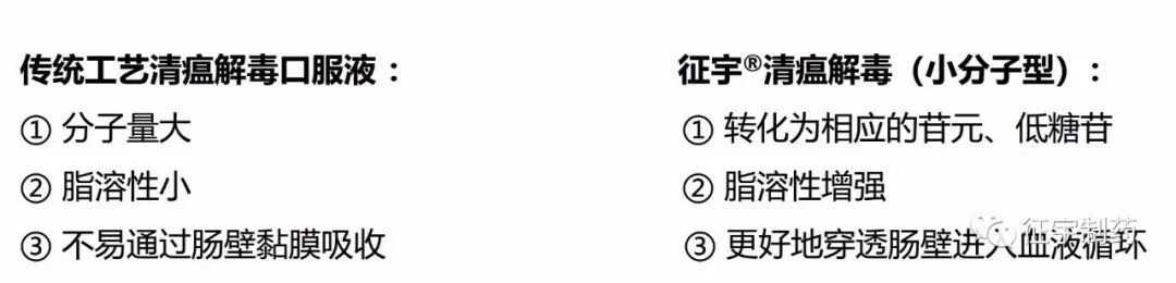 征宇®清瘟解毒(小分子型)采用独特均质恒温固态发酵、低温减压提取工艺,富含小分子状态的有效成分,吸收快,起效快,快速抑杀病毒;迅速缓解高热,控制死亡。